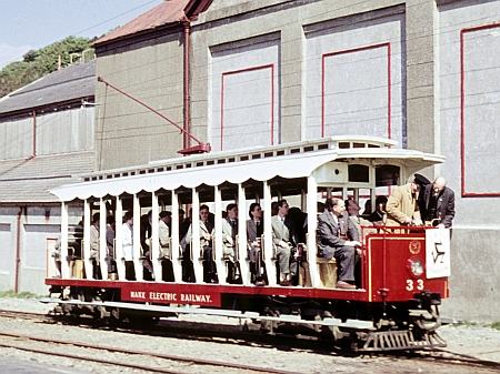 Car No.33 running single-motor northbound past the Derby Castle entertainment complex during a LRTL visit in May 1961. © mer.im