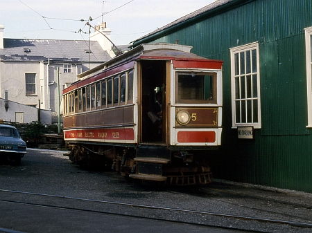 Car No.5 at Laxey, pictured in the Laxey Goods Shed/Blacksmith’s Siding often used by cars working Derby Castle to Laxey ‘specials’. © John Law