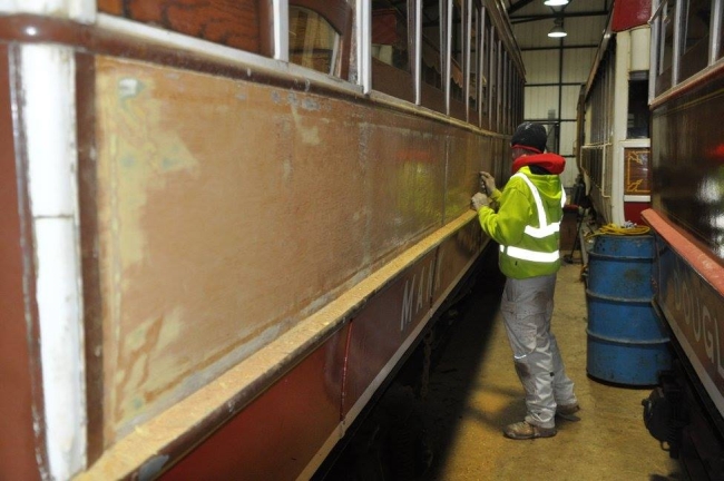 Car No.6 has its bodywork rubbed down in the goods shed. © Andrew Scarffe