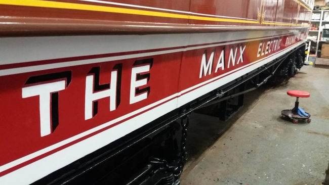 Completed black shaded lettering on the bodyside of Car No. on the 19th of March. © Manx Electric Railway Museum