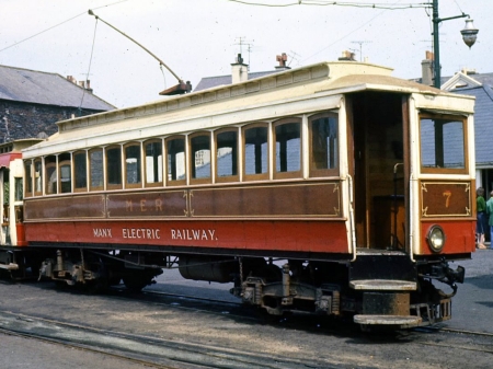 Car No.7 awaiting departure from Ramsey during 1975, after the ‘Manx Electric Railway’ title had been added underneath the M.E.R. © Richard Lomas
