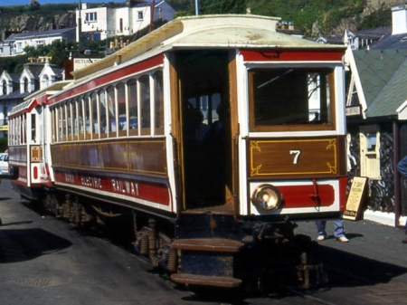 Car No.7 received an overhaul from Winter 1994 to Summer 1995, re-entering traffic in August. It is pictured here with Disabled Access Trailer No.56 during 1996, awaiting departure from Derby Castle to Ramsey. © Rob McCaffery