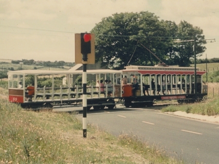 Car No.17 and Trailer No.53 draw a Derby Castle bound special over the level crossing at Ballabeg during the late 1960s. © Travel Lens Photographic