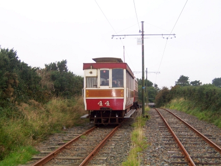 Car No.2 crests the hill with Trailer No.44 at Ballagorry on the 21st of September 2010, a day that saw Cars 1, 2, 16 and 32 all working to Ramsey on the timetabled service as part of the Manx Heritage Tramway Gathering event. © David Martin