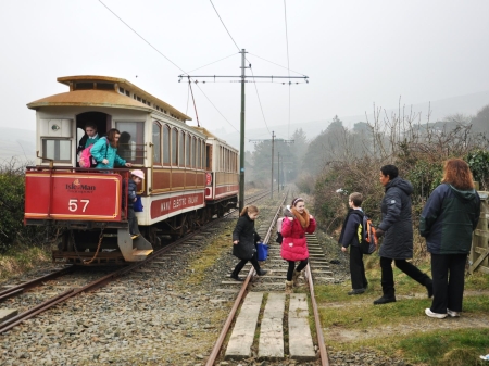 With bus strikes being held on the 6th of March 2013 the specially ran 08:40 Ramsey-Derby Castle, formed of Car No.20 and Trailer No.57, carried school children to the Dhoon School, using the nearby stop at Ballagorry. © Andrew Scarffe