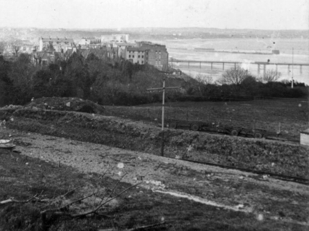 The site of the 1898 terminus was obliterated with the construction of the bridge and extension of the line through to Ramsey Plaza in 1899. In the background can be seen two of the three Bonner Road Rail Wagons stored on the Ballure Car Shed site, a short lived experiment for road-rail transshipment on the M.E.R. © Website Collection