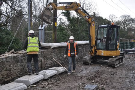 The coping stones on walls near the viaduct, which were in poor condition, were replaced with replica pieces during February. © Andrew Scarffe