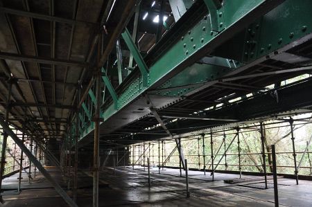 The scaffolding currently surrounding the bridge allowed this view of the main support girder on the Seaside line, looking towards Derby Castle. © Andrew Scarffe