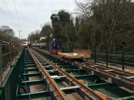 LM344 ‘Pig’ crossing Ballure Bridge. Seen in the background is the new decking arriving. © Joseph Rock
