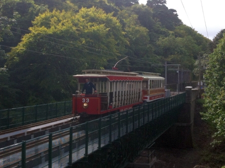 Car No.33 with Trailer No.57 and Wagon No.8 pause for a photo-stop on the bridge whilst on private hire to the Isle of Man 50 Group on the 28th of July 2015. © Alex Fairlie