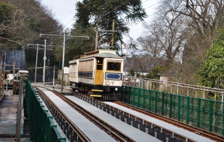 The first service from Ramsey of the 2015 season, Car No.7 and Trailer No.48 working the 10.10am ex Ramsey, crossing Ballure Bridge. © Andrew Scarffe