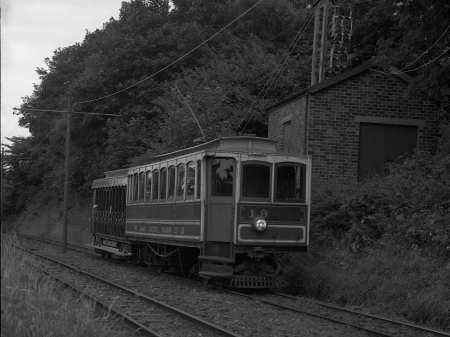 Car No.19 and Trailer No.48 pass the substation and arrive at Belle Vue with a service for Ramsey on the 7th of August 1992. © Colin Clifton