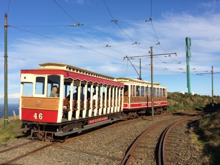 Car No.21 and Trailer No.46 pass Bulgham Head on the 31st of July 2016, heading for Derby Castle. © Alex Fairlie