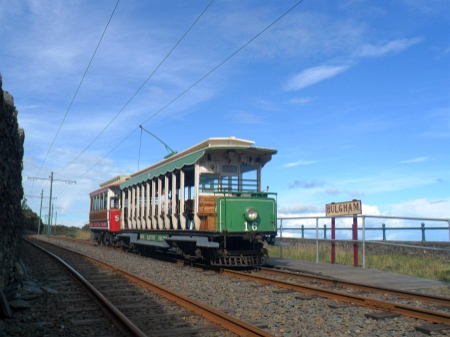 Car No.16 and Trailer No.59 pose for photographs on the 29th of July 2012 with a working from Ramsey to Derby Castle. The combination was in use for the Manx Heritage Transport Festival intensive service day – and all southbound workings stopped at Bulgham for a 2 minute period! © David Martin