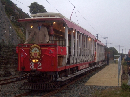The excursion platform at Bulgham opened on the evening of the 4th of August 2009, with the first special trip to call there being a TLP Tours charter – formed of the unusual 3 item consist of Car No.32 hauling Trailers No.46 and No.51. Here the three pose for a photo-stop at the stop – which had been specially renamed ‘Ballawilson’ for the night, after TLP Tours founder Tony Wilson. © David Martin