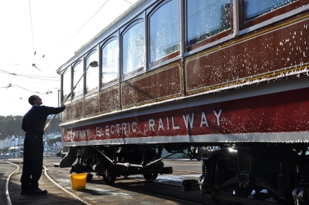 Winter Trailer No.57 is cleaned on the afternoon of the 12th of September 2015, prior to its use on a evening ‘Pie in the Sky’ dining excursion. © Andrew Scarffe