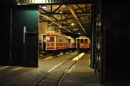 Late evening on the 8th of September 2015 at Derby Castle Top Shed, with Cars No.5 and No.21 on Road 1 and Car No.22 on Road 2. © Andrew Scarffe