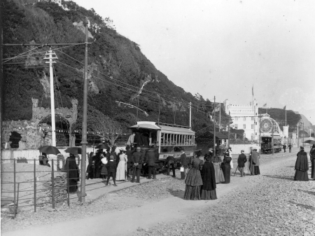 The terminus at Derby Castle shortly after the railways opening in September 1893, with two of the original 1-3 cars present. © iMuseum
