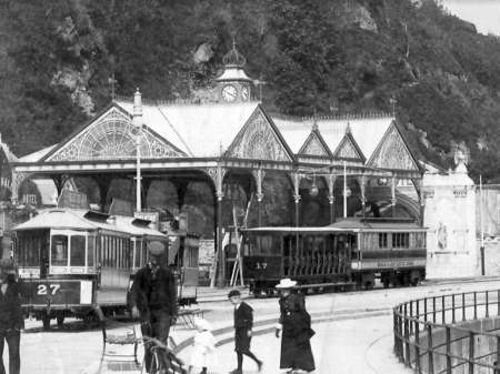 Derby Castle in 1897 with Trailer No.17 (34) waiting departure for the north behind a ‘Tunnel’ Car. © iMuseum