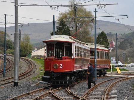 Car No.2 and Trailer No.59 show the shunting arrangements for Laxey terminating services on the first day of their official operation, the 20th of April 2014. © Andrew Scarffe