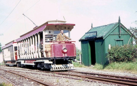 Car No.16 and Trailer No.48 head past Fairy Cottage with a special for Derby Castle on the 26th of May 1974 – on this day the pair only worked one single out and back trip, the next they worked 4! Such is the variable levels of traffic on the Manx Electric. © Richard Pryke