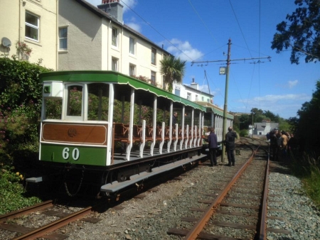 Car 16 and Trailer 60 after arrival at Fairy Cottage with a leg of the ‘Green Wrong Road’ charity railtour on the 1st of August 2015 – the first ever recorded Car/Trailer trip from Derby Castle to terminate here on record! © David Martin