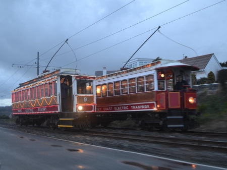 A returning parallel run passes south of Far End with ‘Illuminated’ Car No.9 and Car No.1 heading back to Derby Castle on the 27th of March 2016. © Cade Williamson