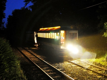 Garwick by night – Car No.7 and Trailer No.48 working the 22:10 Ramsey-Derby Castle wait to reverse over the Garwick crossover at about 23:15 on the 8th of June 2015. © Andrew Scarffe