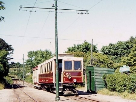 Car No.21 with Trailer No.44 in tow arrives at Glen Mona with a Derby Castle bound service on the 7th of July 1973. © Richard Pryke