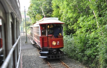 Car No.2 and Trailer No.48 en-route to Ramsey just south of Glen Mona on the 3rd of September 2015, viewed from Car No.1. © Andrew Scarffe