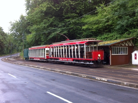 Car No.33, Trailer No.44 and Van No.16 pause for a photo-stop at Groudle whilst operating the ‘Delivering the Goods’ Photographic Charter in July 2016. © Alex Fairlie