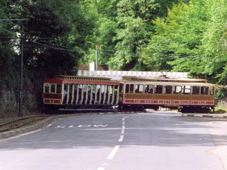 Trailer No.42 is pulled into the Groudle curve by Car No.21 during the 1999 Summer Season. © Jules Hathaway
