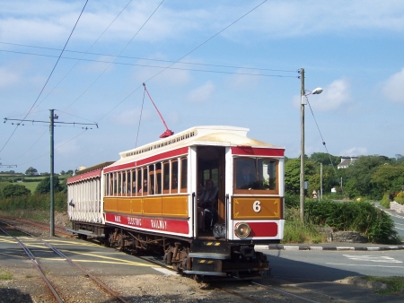 Car No.6 and Trailer No.43 pass over the King Edward Road crossing at Halfway House with the 10:10 Derby Castle to Ramsey on the 30th of July 2011. © David Martin