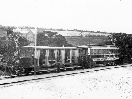 Trailer No.39 waits at the second Laxey Terminus behind a 1-3 series Car while the crew and guests pose for a photograph in 1896/97. © iMuseum