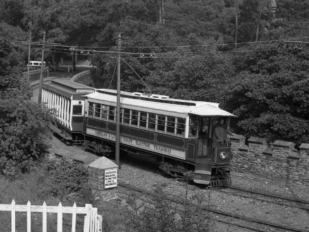 Car No.2 hauls Trailer No.43 across the viaduct with a special from Laxey to Derby Castle on the 31st of August 1984. On this day the pairing worked three round trips to Laxey from Derby Castle, crossing the viaduct at least 6 times! © Colin Clifton