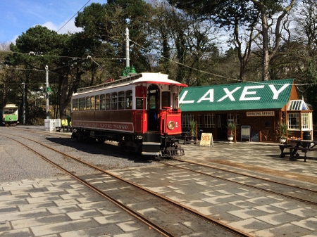 Car No.1, operating special services as part of the April 2016 Rush Hour Event, waits to depart Laxey for Derby Castle. © Alex Fairlie