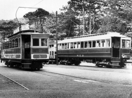 Snaefell No.5 and Car No.6 rub shoulders at the south of end of the station in the early 1960s. © Website Collection