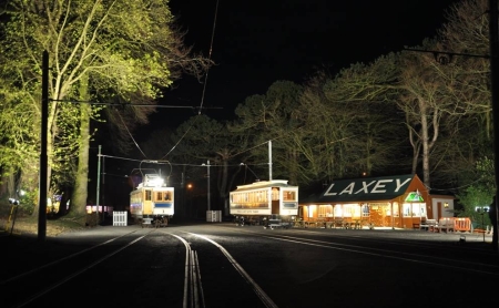 Night photography on Laxey station on the 10th of April 2014 with M.E.R Car No.7 and Snaefell Car No.1. © Andrew Scarffe