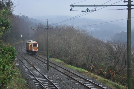Not every day is sunshine in the Isle of Man! Car No.6 on the climb to Millers Crossing in dreary conditions on the 17th of January 2013. The car was operating as part of a special timetable to cover for bus strikes. © Andrew Scarffe