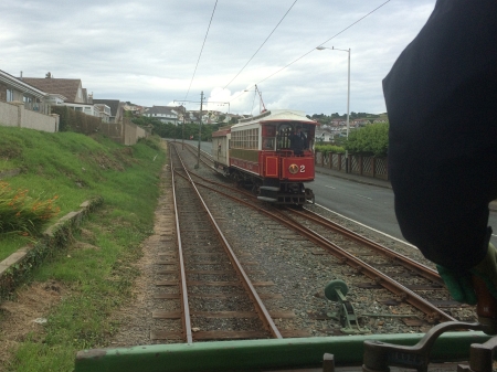 Car No.16 passes Car No.2 and Trailer No.46 at Onchan Head on the evening of the 31st of July 2016. © Alex Fairlie