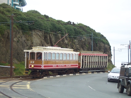 Car No.22 and Trailer No.43 slow to head over the road crossing at Port Jack with a service for Derby Castle on the 20th of July 2011. © David Martin