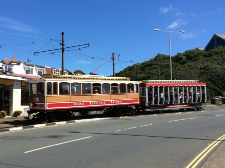 Car No.19 and Trailer No.43 pass the stop at Port Jack with a Derby Castle bound service on the 29th of July 2016. © Alex Fairlie