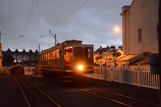 Car No.19 stands at Ramsey Parsonage Road with an evening working to Derby Castle during July 2017. © Andrew Scarffe