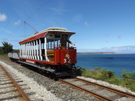 Car No.32 with Open Wagons No.8 and No.10 pause at Windy Ridge for a photo-stop on the 30th of July 2015, as part of the ‘Dhoon Quarryman’ event. © Josh Haworth