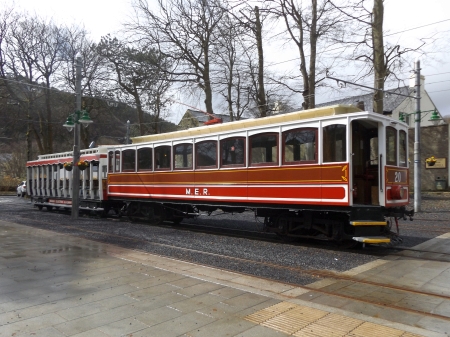 Car No.20/Trailer No.47 wait to depart Laxey to shunt at Dumbells Row. © Josh Haworth