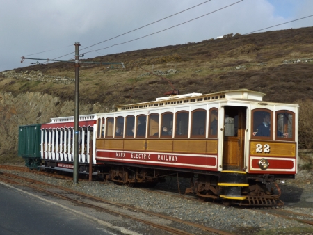 Car No.22 departs Howstrake with Trailer No.46 and Van No.16 in tow. © Josh Haworth