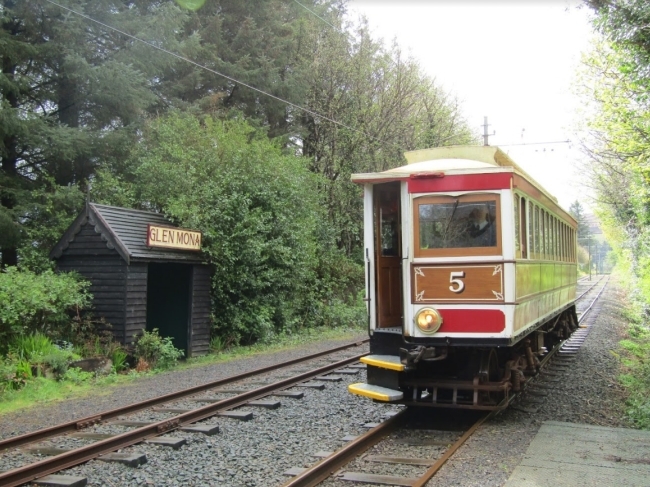 Car No.5 approaches Glen Mona single-motor with the 10:50 Derby Castle to Ramsey. © Josh Haworth