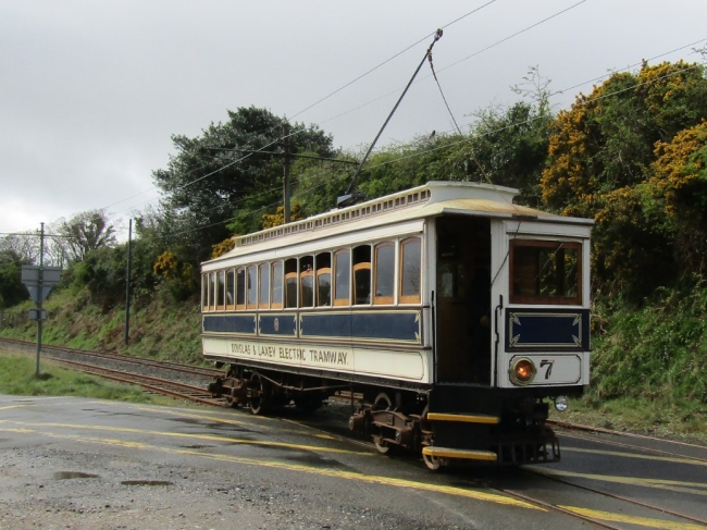 Car No.7 departs Dhoon Quarry single-motor with the 11:40 Ramsey to Derby Castle. © Josh Haworth