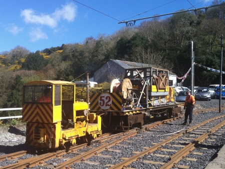 Simplex 40S280 and Trailer No.52 on wire hanging duties at Dumbells Row, ahead of the intensive service on Sunday. © David Martin