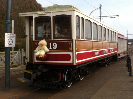 For the Laxey Duck Race held on the 20th, a feathered mascot was carried on the front of Car No.19 for the day. © Alex Fairlie